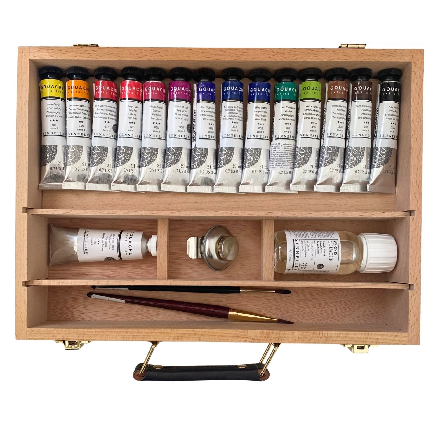 Sennelier Artist Gouache Set in Wooden Box – 15 Tubes of Premium French Paints