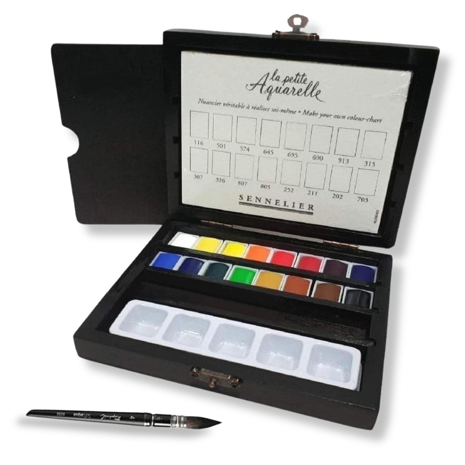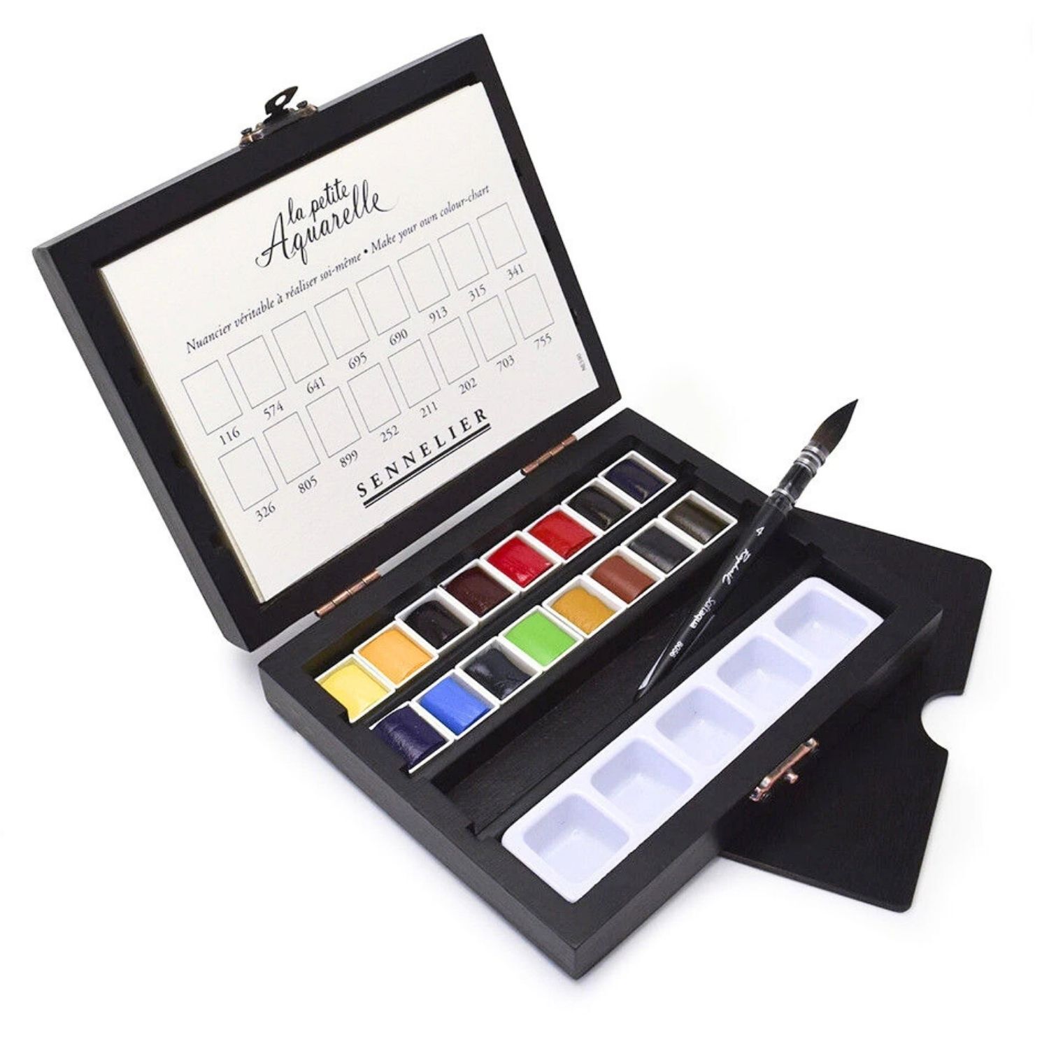 Sennelier La Petite Aquarelle Black Box Set - 16 Half Pans + Brush