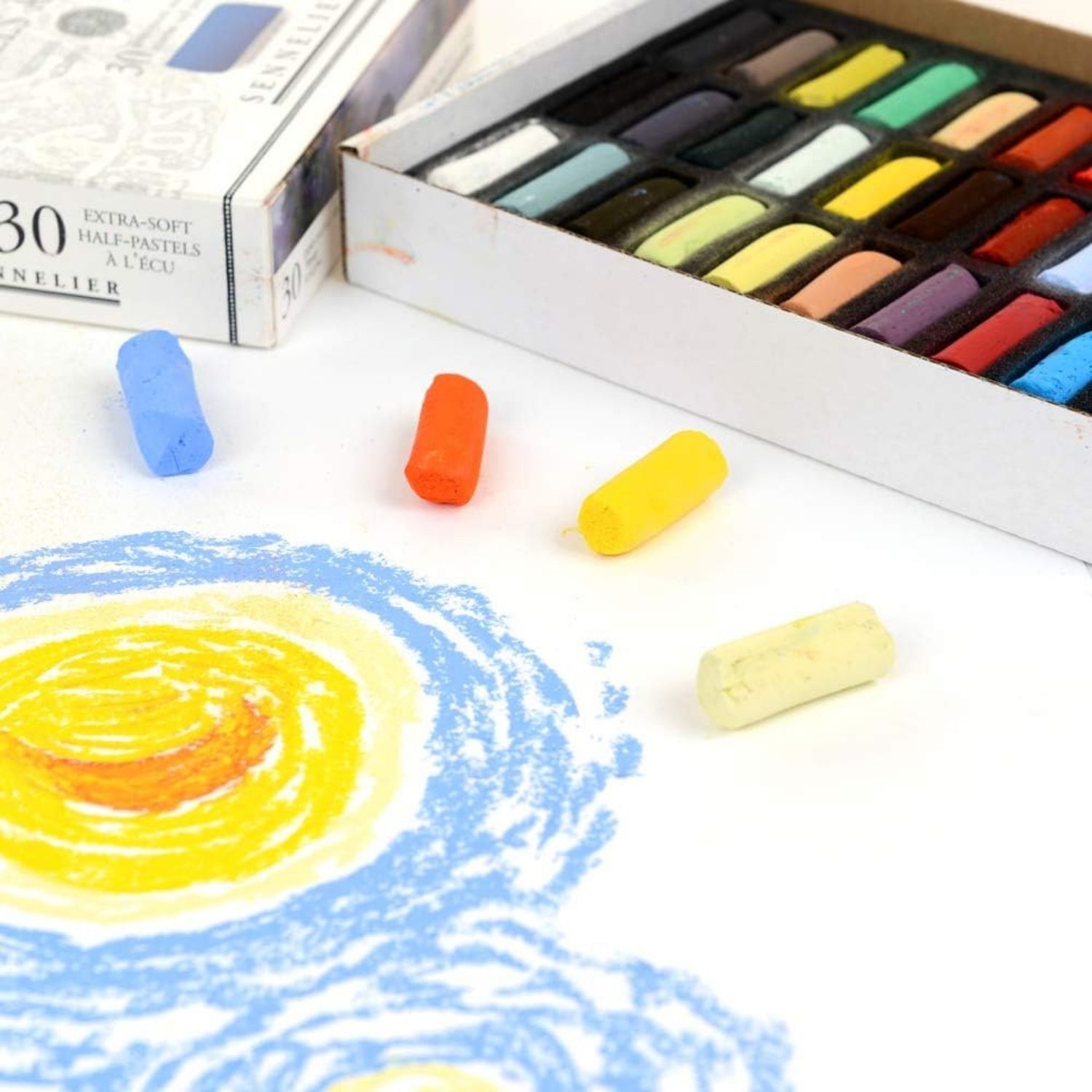 Sennelier Extra Soft Pastels are composed of high quality pure pigment grounded with a natural transparent binder. It took over three years, at the turn of the 20th Century, to formulate the Sennelier range of Extra Soft Pastels “à l’écu” and thus to create one of the largest chromatic range of pastels. Throughout the century, this range of tones has evolved, but the heart of its making remains unchanged.
