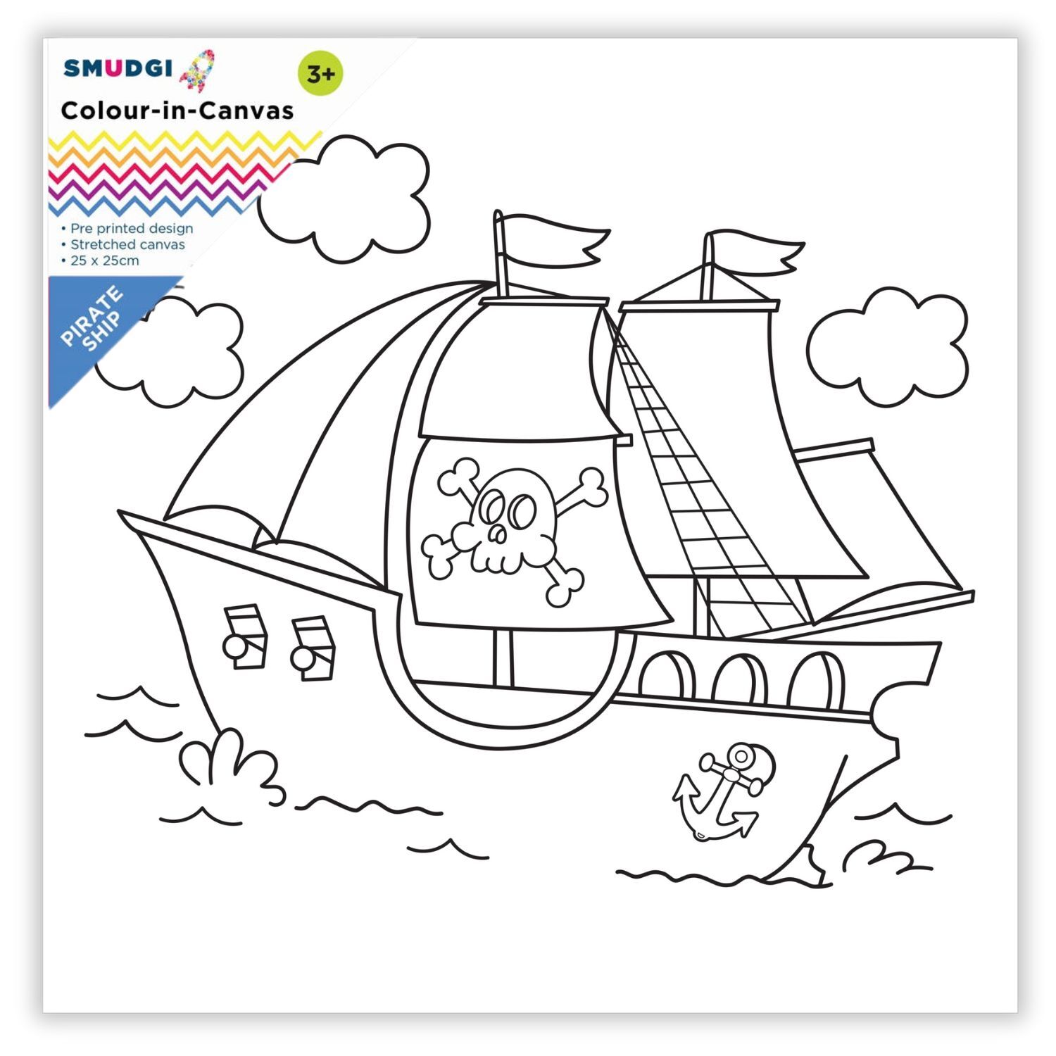 Smudgi Kids Colouring Canvas 25 x 25cm - Pirate Ship