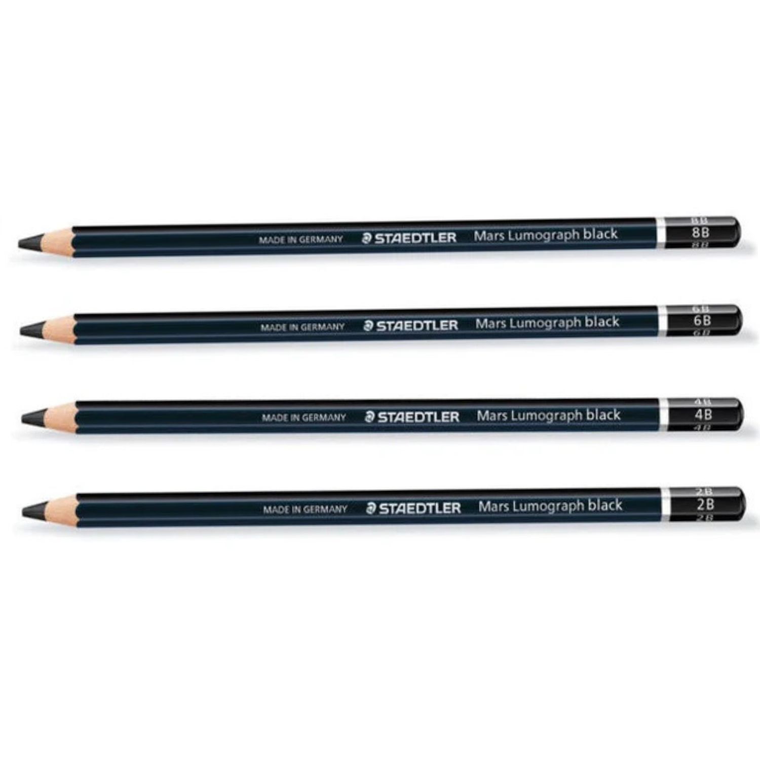 This pencil contains a 2B lead. Staedtler 100 Mars Lumograph black pencils also available in 4B, 6B, 8B and a tin of 6.