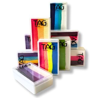 With TAG Split cakes you can create beautiful ombre gradients and special effects with one stroke on the skin or hair. Paint professional body art designs for your school fete, fundraiser, sporting event or theatre production. Suitable for children and adults of all ages.