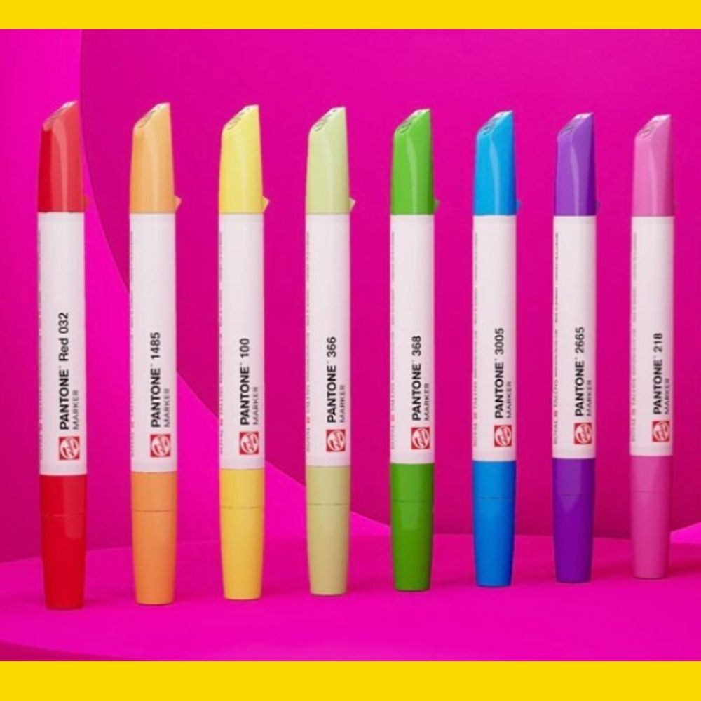 Sketch, draw and design in Pantone colours with Talens Pantone markers! These high quality markers contain pigmented, water-based ink in vivid colours based on the Pantone Matching System™. Meticulously formulated, adjusted and tested by Talens, co-designed and approved by Pantone.