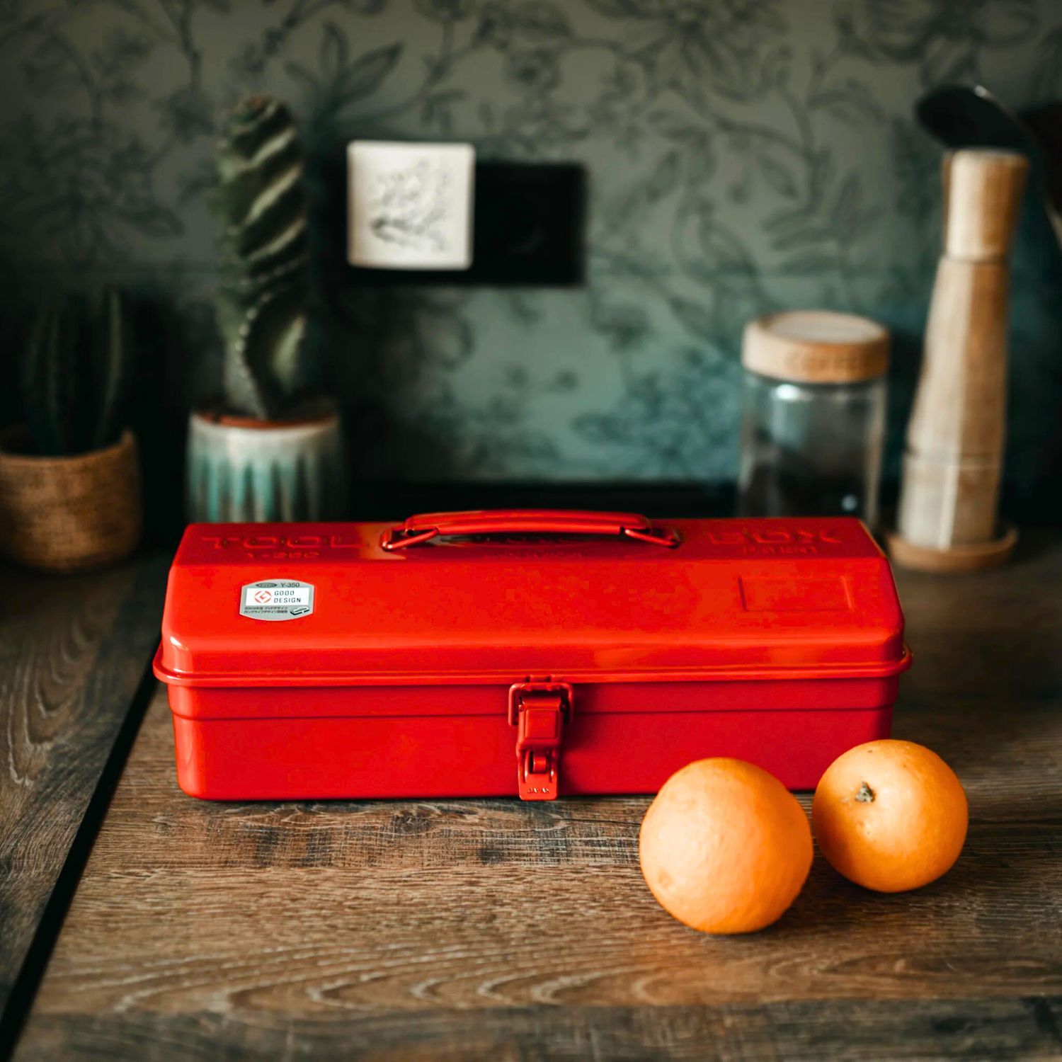 The TOYO Camber-top Toolbox Y-350 features a curved lid design called  that combines durability with efficient storage. Made from high-quality steel, it’s ideal for artists needing organised, accessible storage with a compact footprint.
