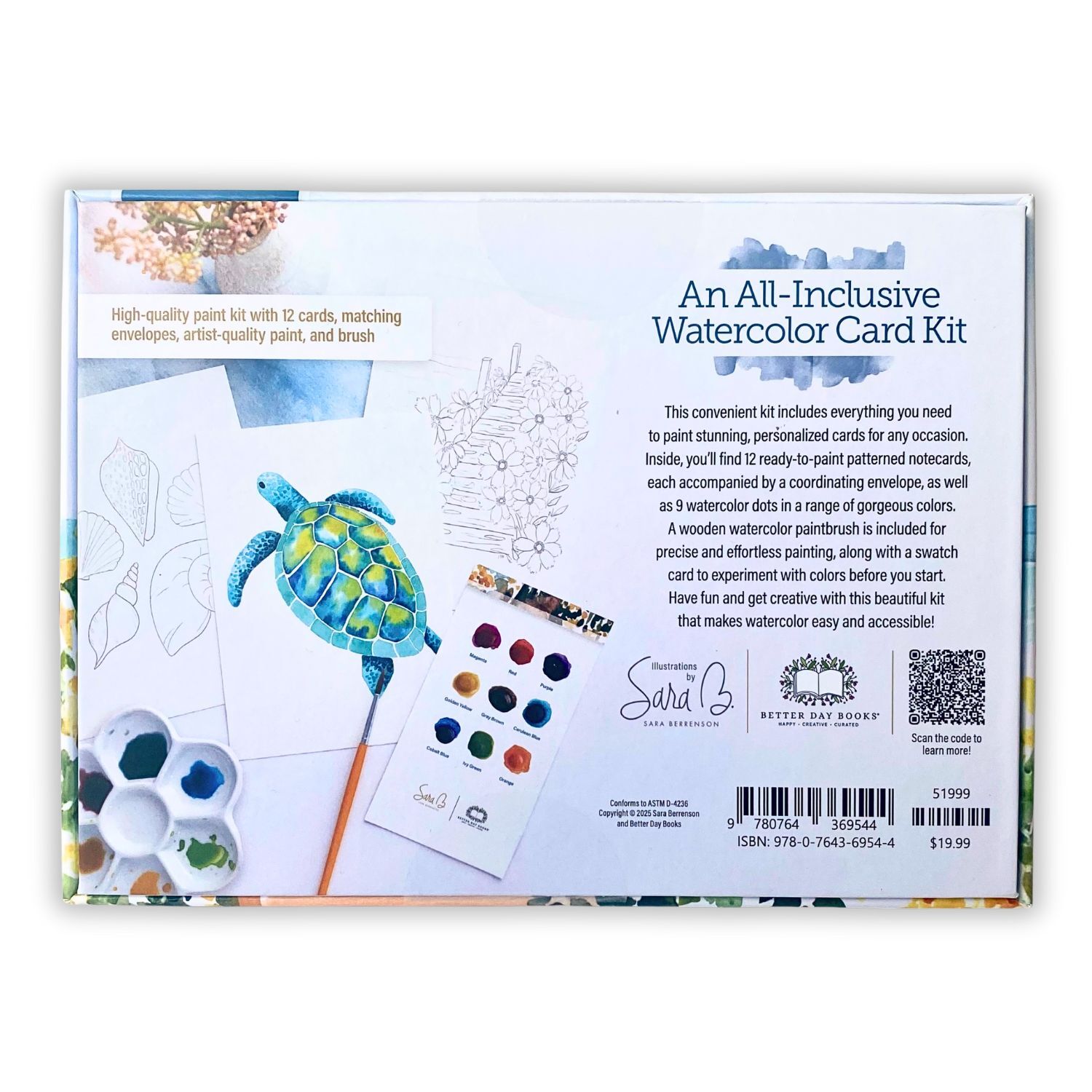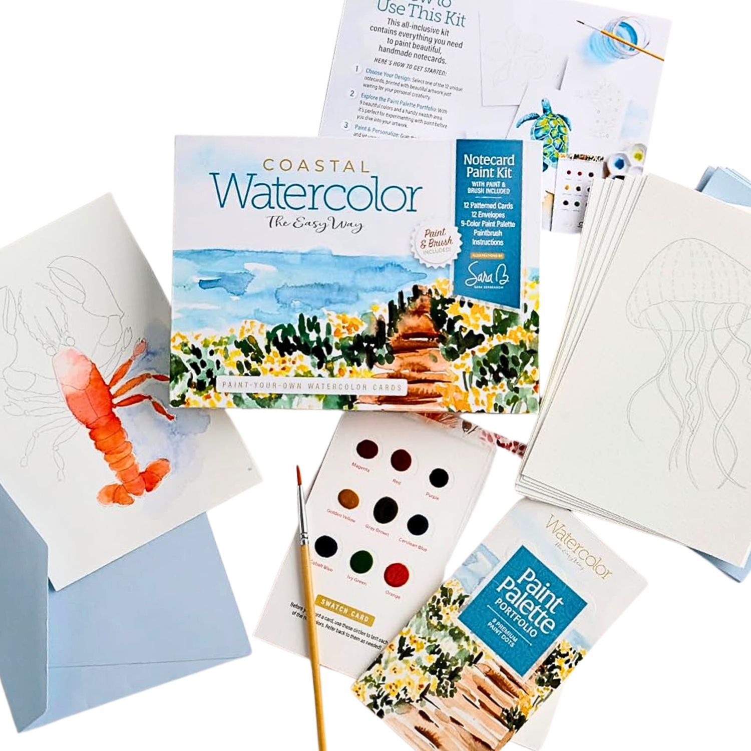 Relax and unwind as you experience the joy of watercolour painting with this deluxe kit that includes everything you need to get started—even the paint itself! This beautiful lidded box includes 12 illustrated coastal designs featuring the art of best-selling author and watercolour artist Sara Berrenson. Printed on thick watercolor paper, the 12 notecards are perfect for framing or gifting, and each one can be painted in just one sitting.