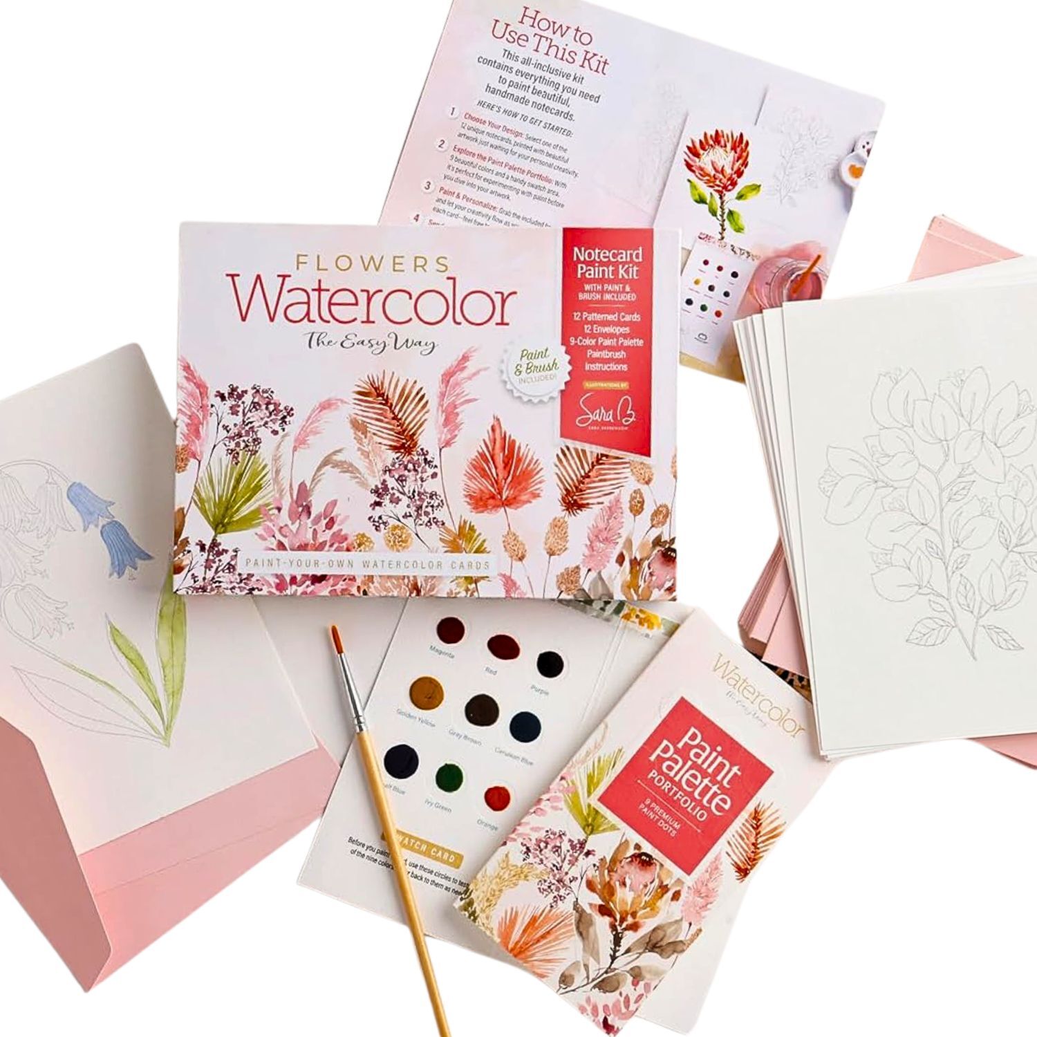 Also included in the box are 12 coordinating envelopes, an easy-to-use and innovative 9-colour watercolour paint palette, a swatch card, and a paintbrush. The high-quality paint palette contains all the colors you’ll need to paint the designs, mix your own custom shades, and let your creativity flow. You’re sure to love this all-in-one set that truly makes watercolouring a joy!