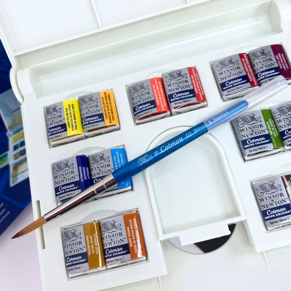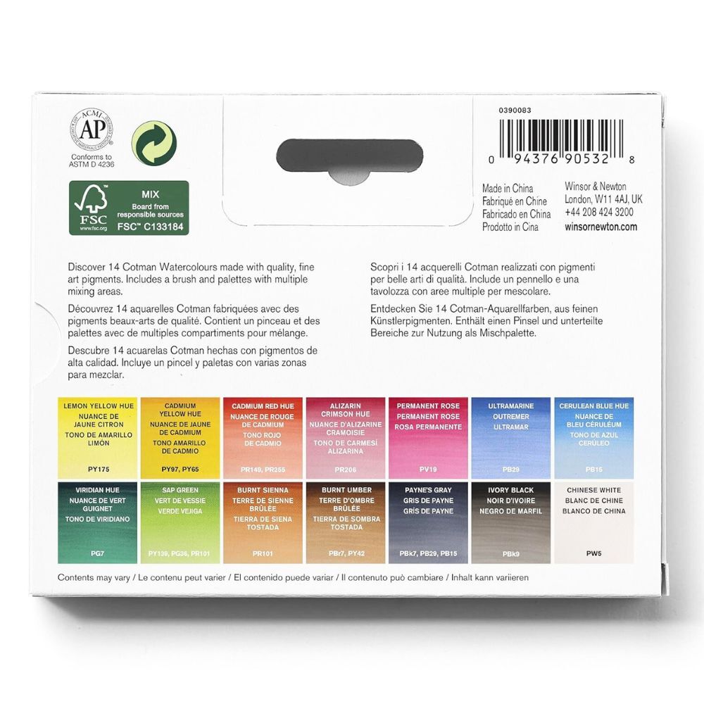 Winsor & Newton Cotman Watercolour Compact Set with 14 Half Pans + Brush